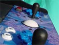 controls including Two Joysticks, a 3" trackball and